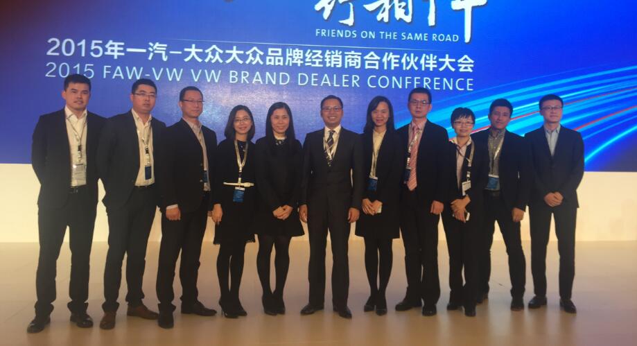 盈眾汽車集團董事長張桂陽(左六)攜一汽-大眾品牌團隊參加經銷商合作伙伴大會