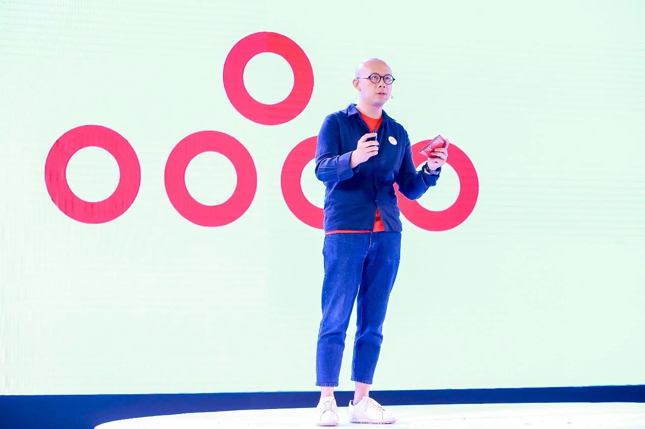 設(shè)計(jì)師黃揚(yáng)現(xiàn)場解讀盈眾全新品牌形象。他表示,新Logo對原有品牌形象進(jìn)行了傳承與創(chuàng)新,五個紅色圓環(huán)通過極簡手法重新排列,形成更具創(chuàng)新感和未來感的圖形符號,象征著盈眾一直追求的和諧人車關(guān)系。