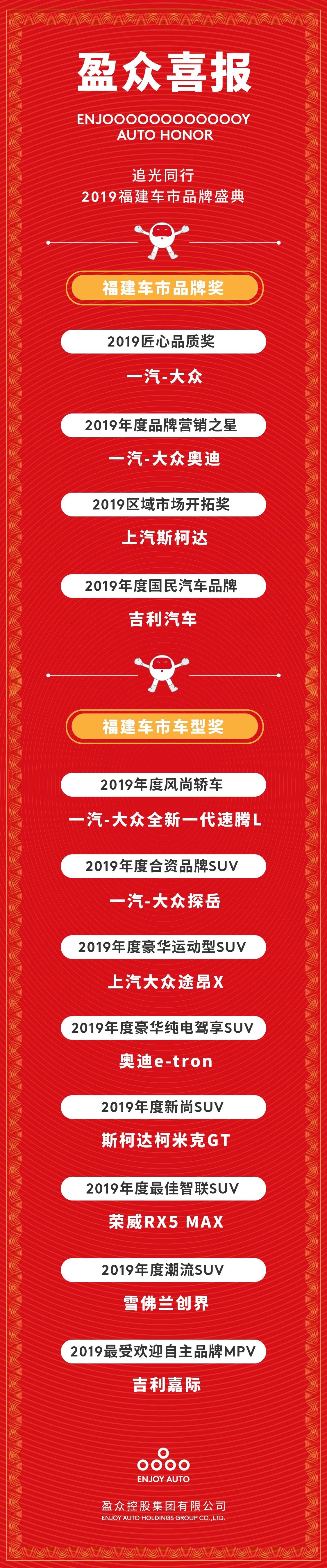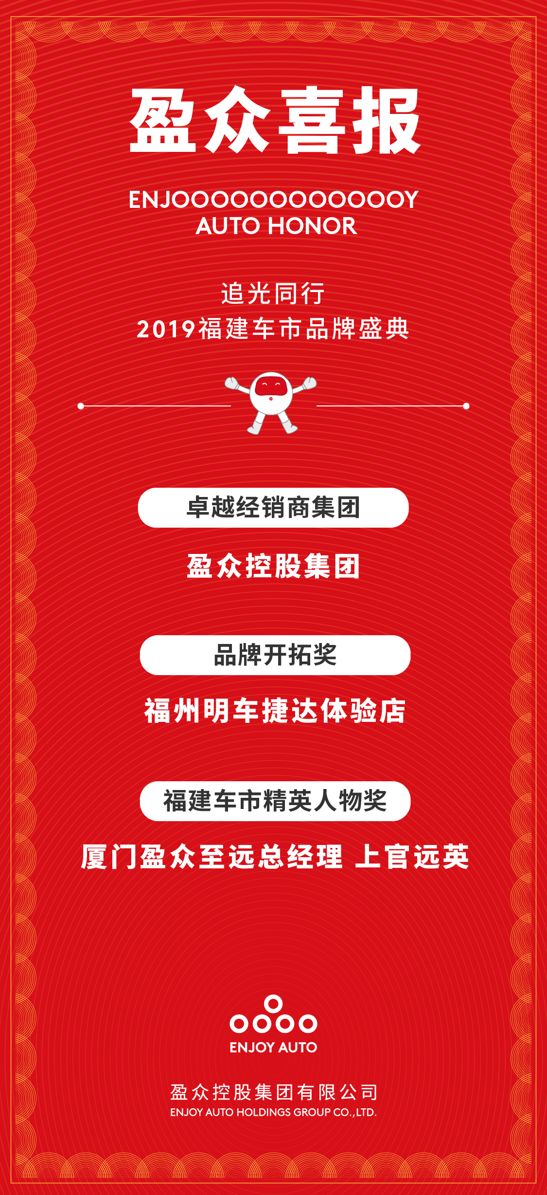 此外,盈眾經(jīng)銷的多個品牌、多款車型分別榮獲福建車市品牌獎和福建車市車型獎。