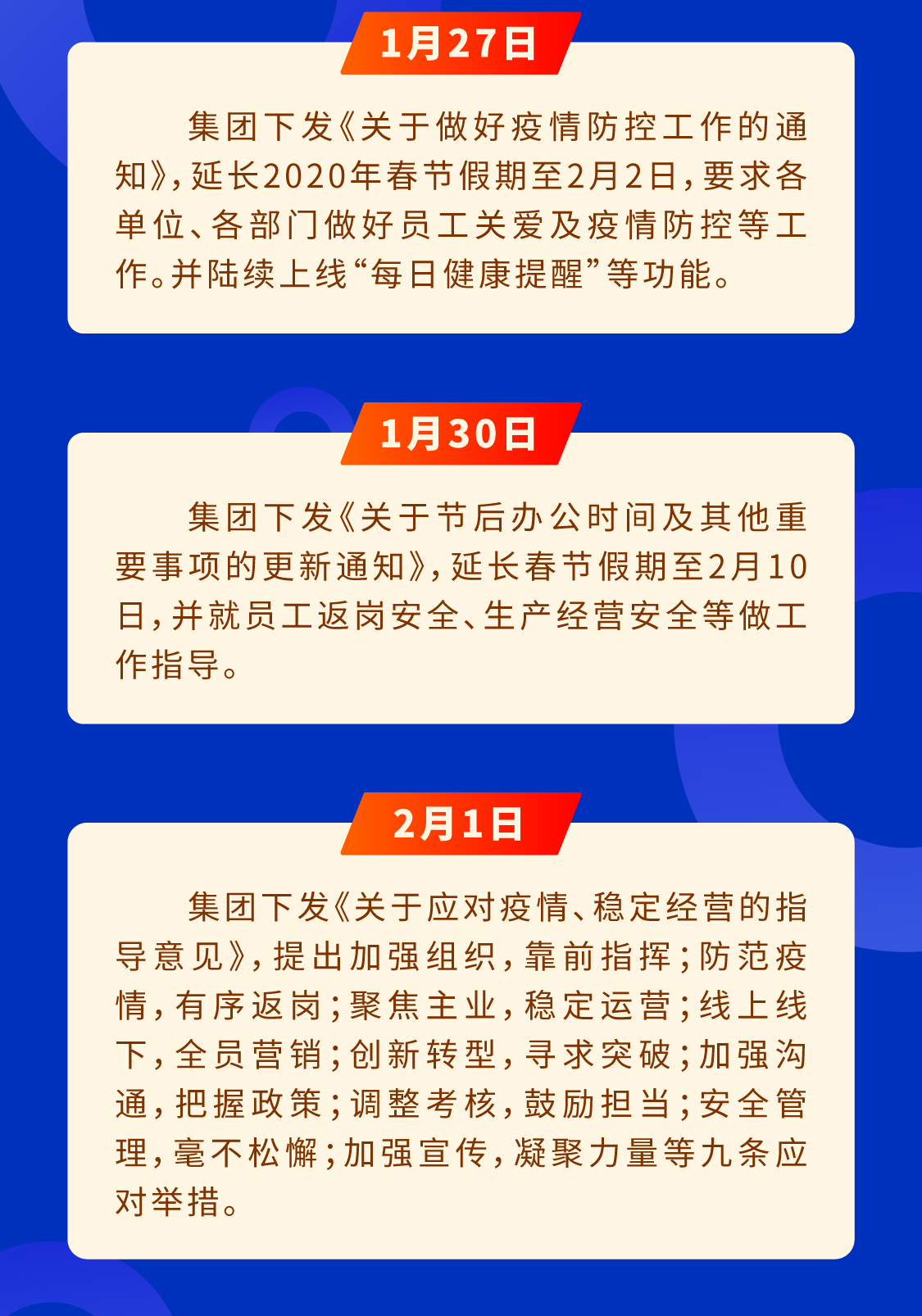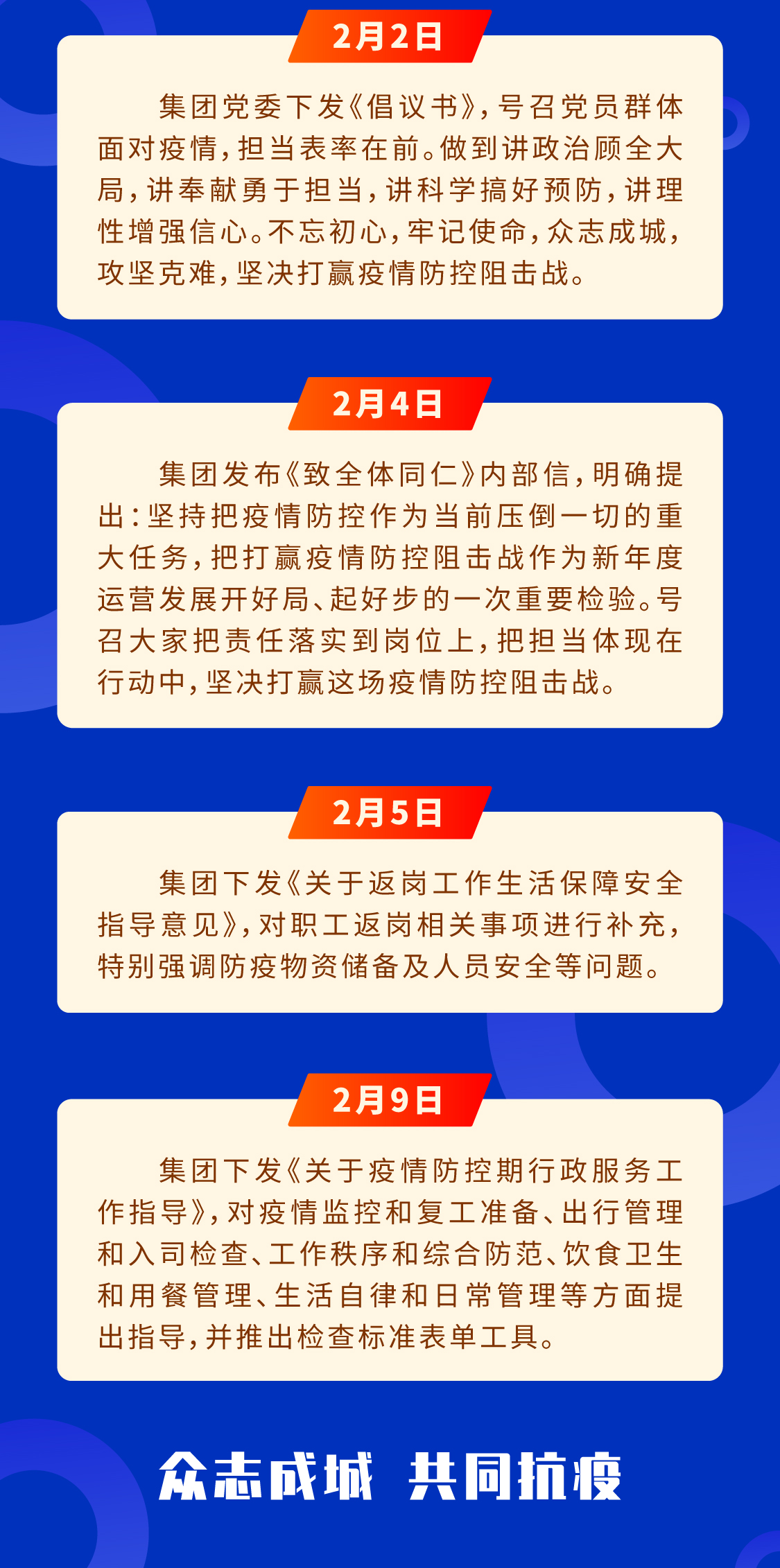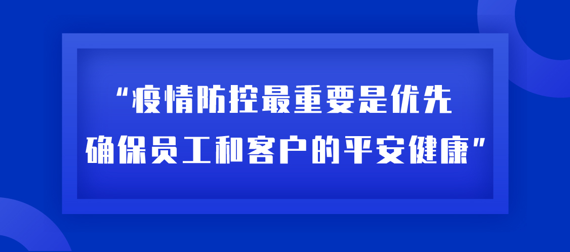 張總多次對工作小組強調(diào):“疫情防控最重要是優(yōu)先確保員工和客戶的平安健康”。陳主任表示,基層一線是對外服務的窗口,是防控工作重中之重,集團全體同仁多一分擔當,員工的安全就多一分保障,我們的客戶和家人就多一分安康。