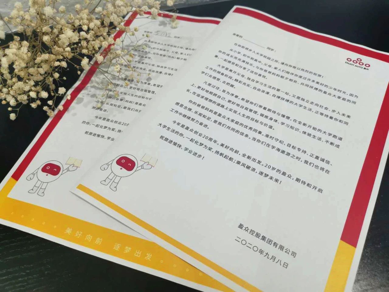 ▲張總寫給莘莘學子們的一封信,鼓勵大家實現人生目標