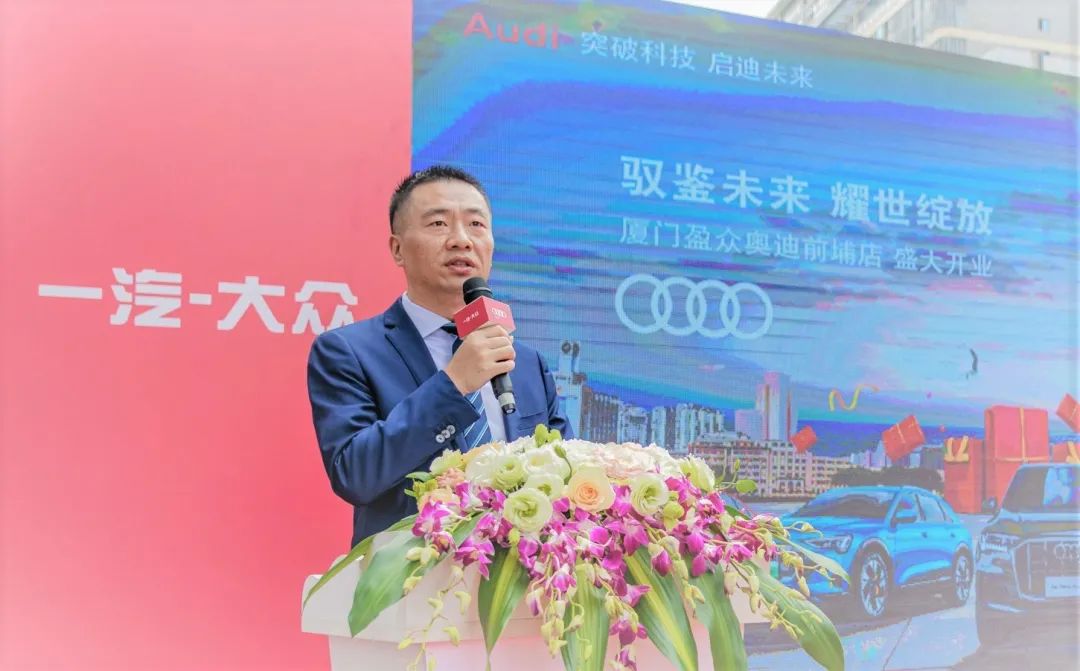 一汽-大眾奧迪銷售事業部東南區區域主管銷售經理葉鵬向廈門盈眾奧迪送上了誠摯祝福,并且表達了自己的希冀:希望廈門盈眾奧迪前埔店全新數字化體驗中心以其示范效應,帶動一汽-大眾奧迪品牌在新區域的發展與蓬勃;也衷心希望廈門盈眾奧迪前埔店能夠不忘初心,砥礪前行,繼續為廣大客戶提供優越的購車服務,為盈眾集團創造更多效益,也為一汽奧迪的份額做出更大的貢獻。