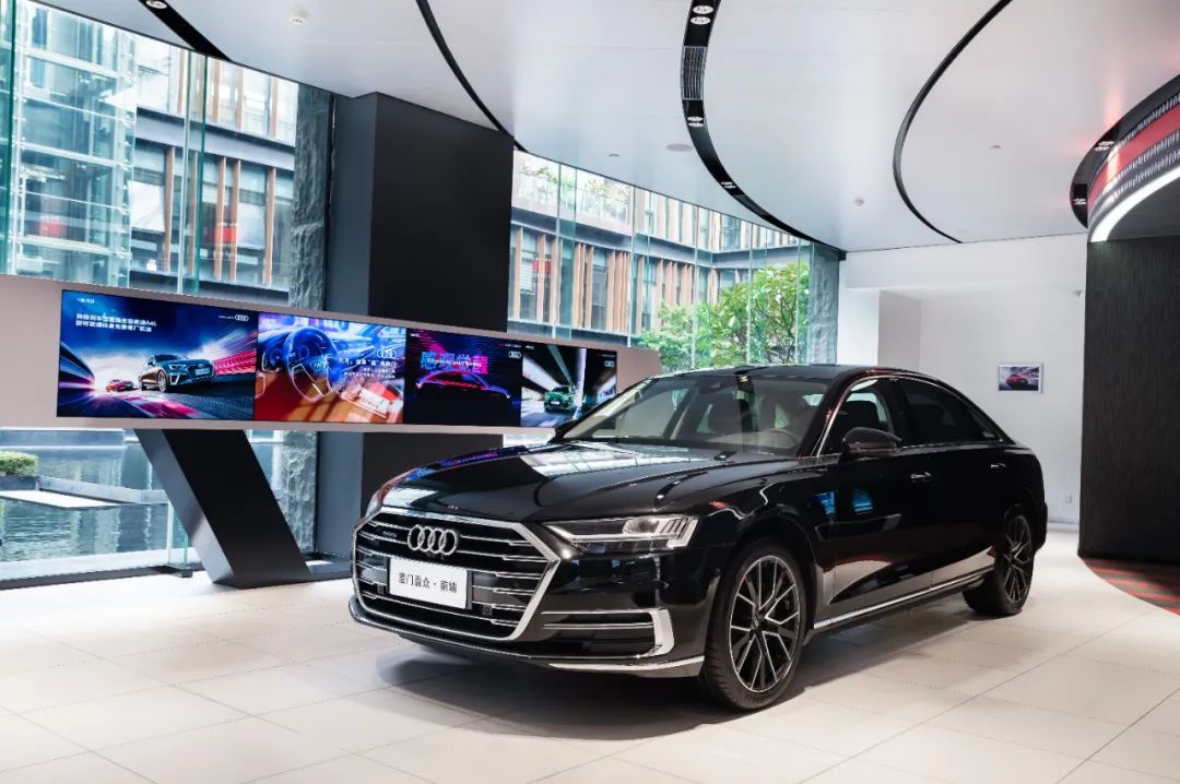 八塊科技感十足的大屏所吸引,它們將生動呈現奧迪品牌全系車型。展廳內還設有