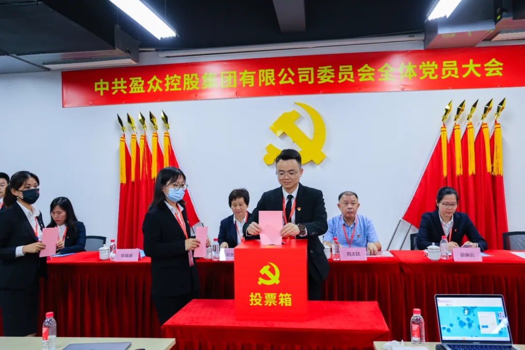 黨委換屆以無記名投票、差額選舉方式,選舉出新一屆黨委、紀委領導班子。鄭藝紅、陳瑞春、蔡曉云、柳瑞瑜、陳隆龍5位同志當選為中共盈眾控股集團有限公司委員會新一屆委員。陳瑞春、蔡曉云、李碧霞3位同志當選為中共盈眾控股集團有限公司紀律檢查委員會新一屆委員。大會休會期間,黨委、紀委分別召開黨委、紀委第三屆第一次會議,通過無記名投票,選舉鄭藝紅同志為黨委書記,陳瑞春同志為黨委副書記、紀委書記。