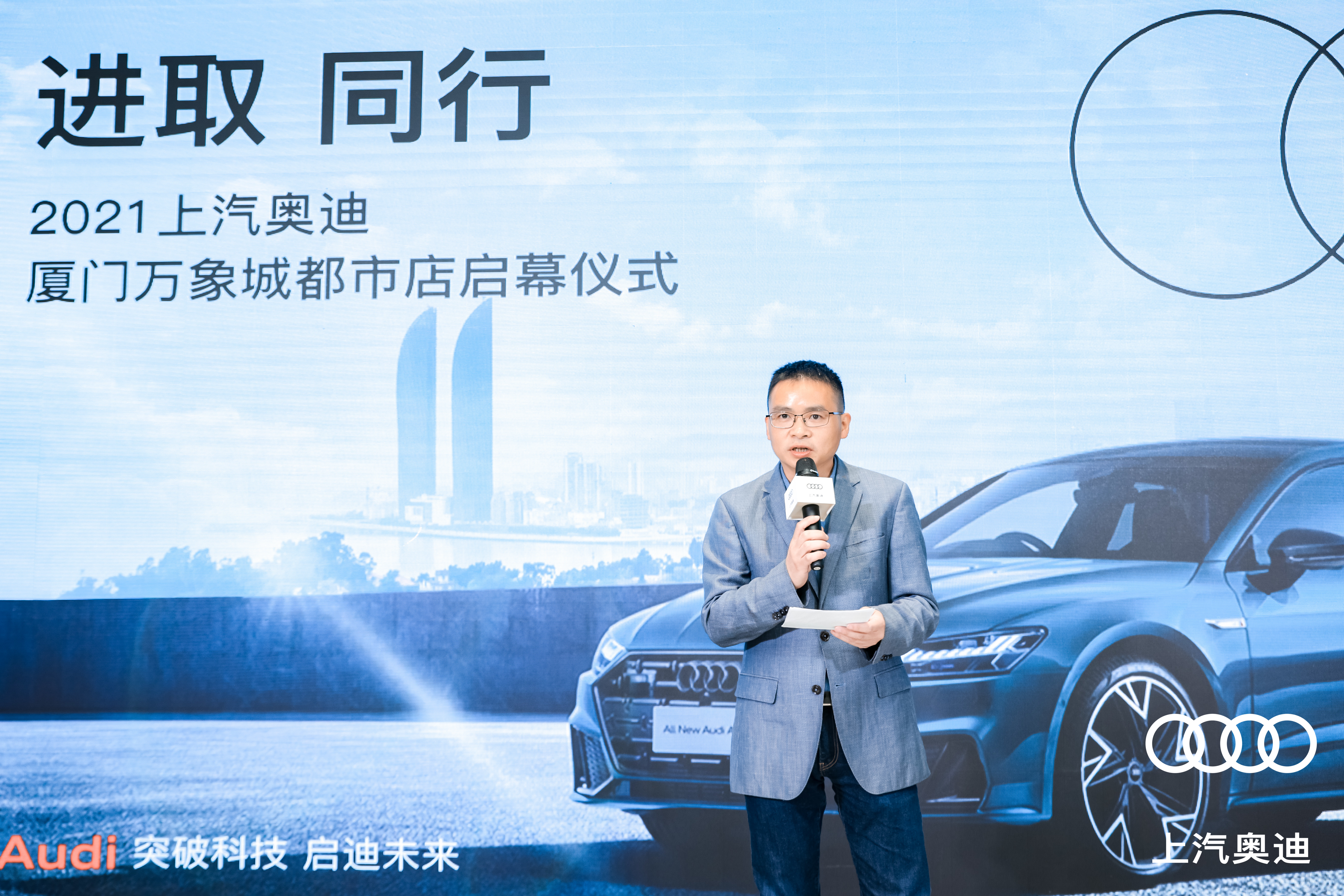 盈眾控股集團副董事長孫聘仁對上汽奧迪品牌以及雙方未來的合作前景充滿信心和期待。“上汽奧迪廈門萬象城都市店是盈眾集團代理的第一家上汽奧迪都市店,也是福建首家上汽奧迪都市店。從籌建之初,盈眾對此就保持著高度重視,旨在通過本店,與上汽奧迪進取、同行,一起放開想象,開創汽車新時代。”孫總在致辭中還強調,“相信廈門萬象城都市店的開業,能夠為廈門區域客戶帶來更豐富的購車選擇和更美好的車生活體驗。盈眾上汽奧迪團隊,也將積極融入用戶生態圈,全面提升用戶全生命周期的每一個服務細節,展現出盈眾與上汽奧迪的新品質和新溫度。”