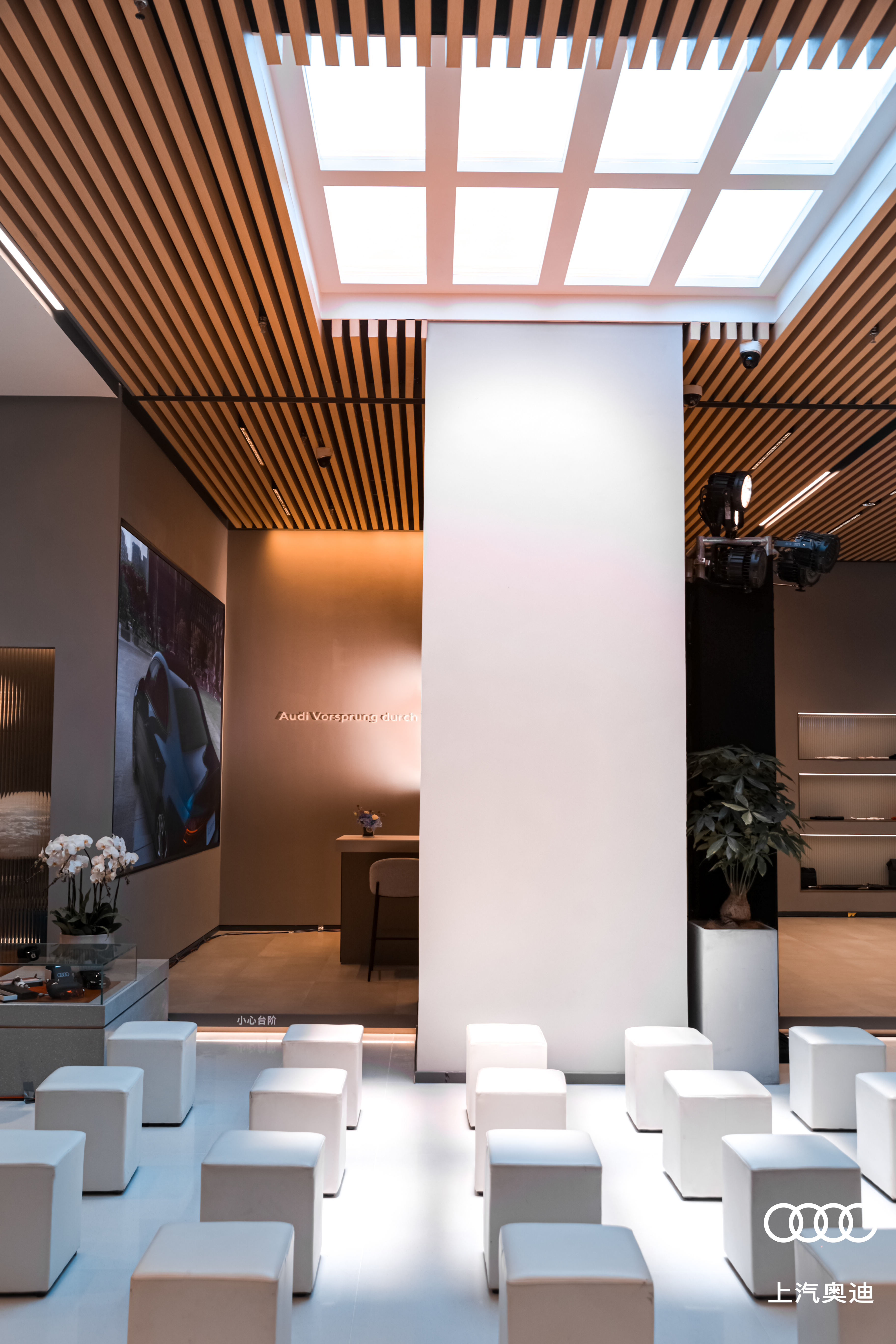 上汽奧迪廈門萬象城都市店遵循科技豪華的美學理念而打造,無論是灰色墻體、中央仿日光照明系統,還是金屬與石材完美搭配的區域分割屏風,都呈現優雅通透的視覺感,營造出令人耳目一新的格調,完全區別于傳統的展廳風格,使客戶在空間感上獲得舒適、高端的購物體驗。