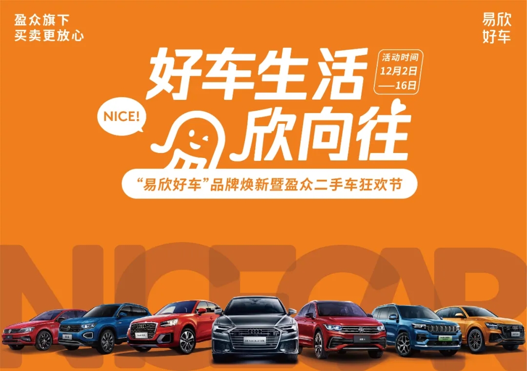 12月2日,“好車生活 欣向往”——易欣好車品牌煥新暨盈眾二手車狂歡節在線上正式開啟。盈眾旗下二手車品牌易欣好車宣布正式啟用全新品牌名稱及標志,升級標準化服務體系,邁向品牌化發展的新篇章。