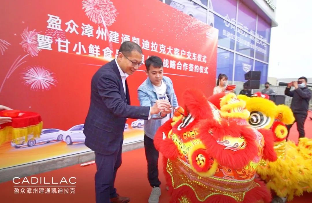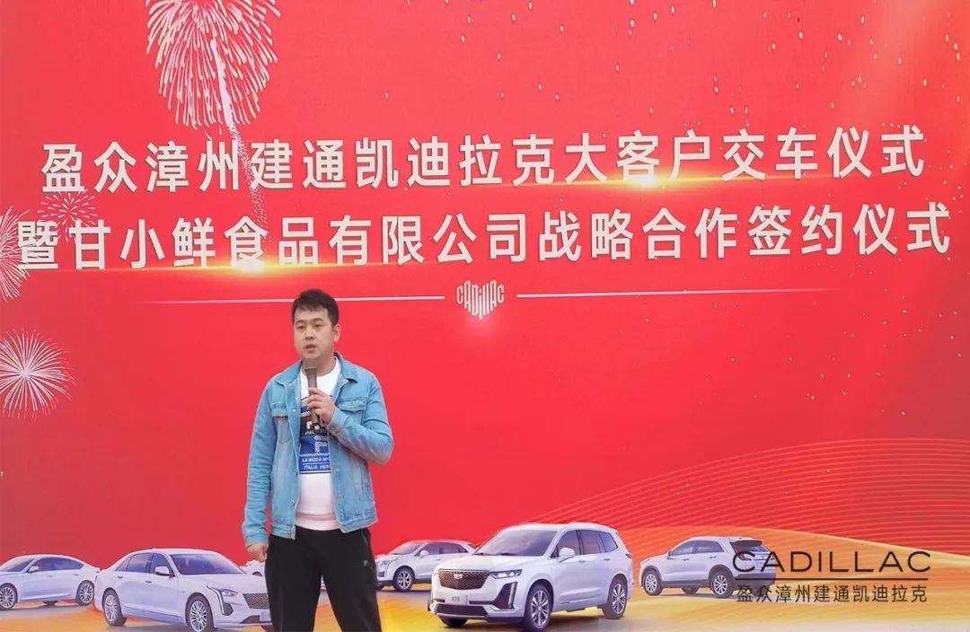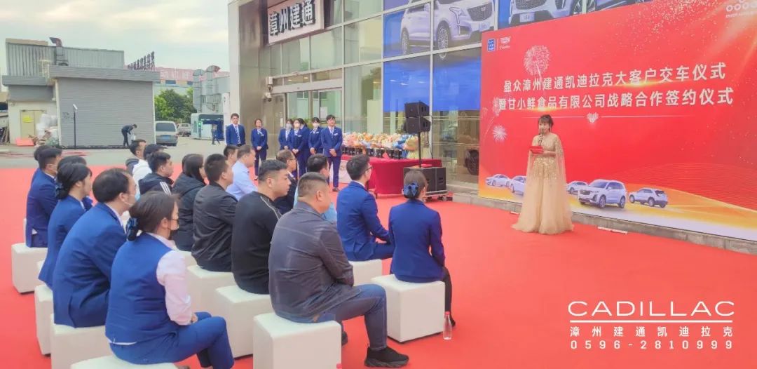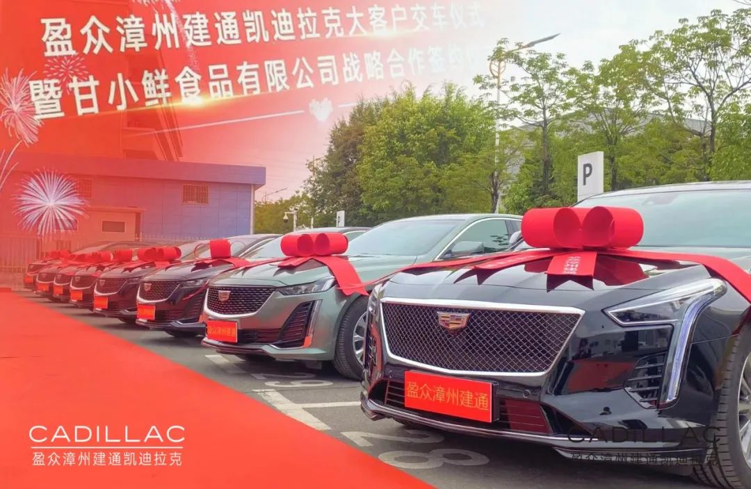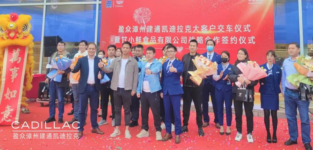 12月12日,盈眾漳州建通凱迪拉克與甘小鮮(福建)食品有限公司戰略合作簽約暨大客戶交車儀式在漳州舉行,甘小鮮(福建)食品有限公司董事長甘裕勇、總經理常俊崗,盈眾集團上汽通用品牌投資人代表林利山、漳州建通凱迪拉克總經理曾蛟龍以及相關業內人士、媒體朋友參加了本次儀式。