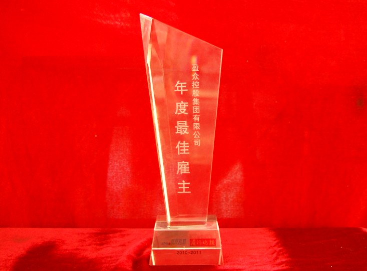 2011年9月26日,在廈門晚報和智聯招聘強強聯手打造的“廈門2010-2011年度最佳雇主品牌調查”活動中,經過HR問卷、外部大眾調查、內部員工調查、丏家評分等評選流程,盈眾控股集團有限公司從100多家企業中脫穎而出,在雇主吸引力、員工成長力、薪酬競爭力、雇主凝聚力、社會責任力等評選指標中表現卓越,榮獲“2010-2011廈門年度最佳雇主”獎杯。